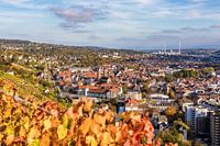 Uitzicht over wijngaarden nabij de Neckarhaldenweg naar het centrum van Esslingen am Neckar, Baden-Württemberg, Duitsland