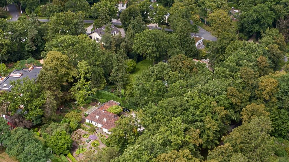 Zicht op Hilversum gezien vanuit een drone op een hoogte van 100 meter.