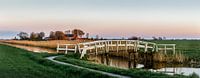 Fietspad van Rien naar Lutkewierrum met de brug over een dwarsvaart van de franekervaart. In de achtergrond Lutkewierrum (Lytse Wierrum, Friesland).