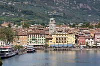 Het levendige mondaine vakantieoord Riva del Garda is omgeven door machtige bergen op het smalle noordelijke puntje van het Gardameer.