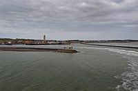 Zicht op West-Terschelling vanaf vertrekkende boot richting Harlingen