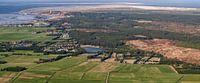 Zicht op het dorp West van Waddeneiland Terschelling vanaf Camping De Kooy in Hee naar het Westen