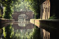 Zicht op de Brigittenbrug vanaf de Nieuwegracht in Utrecht. Foto uit juni 2016, gemaakt vanaf een bootje door de Utrechtse fotograaf André Blom. Links en rechts de werven en werfkelders die uniek zijn in de wereld.