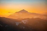 Zicht op de Grünten (de wachter van de Allgäu) bij zonsondergang