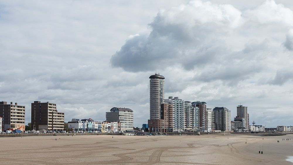 Zicht op de plaats Vlissingen in Zeeland. Gelegen aan de monding van de Westerschelde. Hier varen de grote schepen in en uit. De Boulevard met de hoge appartementen complexen geven het aanzicht iets moois.