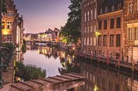 Zicht op de prachtige historische gevels van de Kraanlei (Gent) met weerspiegeling in de Leie, genomen vanop de Zuivelbrug.