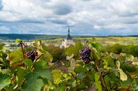 Zicht op dorp in de Champagne streek in Frankrijk met in de voorgrond druiven