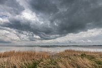 Zicht op het Slotermeer in Friesland met een stevige wolkenlucht van Harrie Muis
