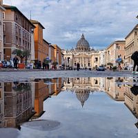 Door de straten van Rome zicht op Vaticaanstad met als prominente plek de Rooms-Katholieke Kerk of de St-Pietersbasiliek.