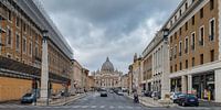 Door de straten van Rome zicht op Vaticaanstad met als prominente plek de Rooms-Katholieke Kerk of de St-Pietersbasiliek.