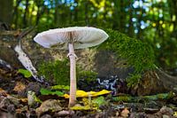 Zicht op paddenstoelen in een holle boom in het bos