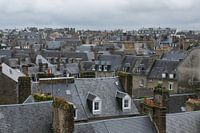 Romantisch beeld over de daken van Avranches in Normandië, Frankrijk. Net na een flinke regenbui glimmen de natte daken nog in het licht.