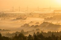Uitzicht vanuit een toren over het Bergherbos bij Stokkum op een mistige herfstochtend
