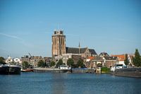 Zicht over de Kalhaven in Dordrecht op de Grote Kerk. Mooi zicht op deze Hollandse stad aan de haven. Mooie zonnige dag zonder een wolkje aan de hemel geeft een mooi plaatje.