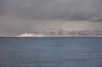 Zicht vanuit Reykjavik op de baai met in de verte besneeuwde heuvels. De uitgestrektheid en leegheid van IJsland is overal terug te vinden. De Utrechtse fotograaf André Blom legde het vast in maart 2011.