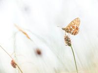 Zilveren Manen zijn erg fotogeniek, zowel de onderkant als bovenkant van de vleugels zijn prachtig om te zien. Door flink over te belichtend kreeg ik deze witte achtergrond.