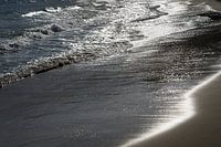 Zeewater dat tegen het licht zilvergrijs en donkergrijs lijkt. Als ik langs de zandstranden van Calpe loop, geniet ik vaak van het geluid van de zee en voel ik het zachte zand op mijn voetzolen. Ik ben vooral gefascineerd door de zachte golven die steeds opkomen en richting de kust bewegen. Wanneer donkere wolken de kust naderen en het wateroppervlak wordt verlicht door de laatste zonnestralen, kan de sfeer aan zee heel magisch zijn. Dan lijken het water en het natte zand bijna monochroom. Het is de stilte voor de storm.