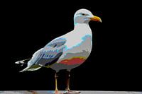 Digitaal bewerkte afbeelding van een zilvermeeuw.