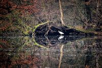 Zilverreiger aast op vis aan de Wittsee bij Nettetal in Duitsland.