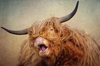 Lisa, de blonde Hooglander is ook een begenadigd zangeres. Prachtig Schots Highland rund in indrukwekkende pose.