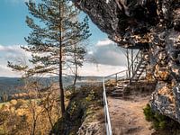 De klim naar de top van de Zirkelstein, een kleine tafelberg in het Elbezandsteengebergte, is kort maar steil. Eenmaal op de top geniet de wandelaar van een prachtig 360-graden panoramisch uitzicht. Je kunt tot in Tsjechië kijken.