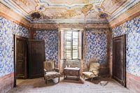 Een klein hoekje om even uit te rusten op de eerste verdieping van een oude Italiaanse boerderij. Het is een vredig beeld waar je even snel een kopje koffie drinkt.