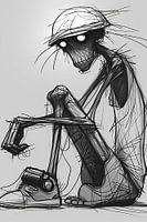 Dit intrigerende kunstwerk vangt een moment van contemplatie vast. Een eenzame figuur, gehuld in mysterie, zit in een verstilde pose. De monochrome tinten versterken de melancholieke sfeer, terwijl de gedetailleerde lijnen de complexiteit van de emoties onthullen. Een perfecte aanvulling voor een Modern ruimte die een vleugje…