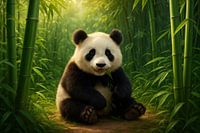 Zittende panda tussen bamboe van Art & Soul Creations