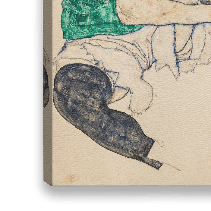 Koop Zittende vrouw met opgetrokken benen, Egon Schiele als reproductie op canvas, aluminium dibond, (ingelijste) fotoprint, behang en ArtFrame, op maat geprint in Fine-Art kwaliteit.