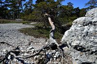 Rondwandelen in de Folhammar Raukområde bij het dorp Ljugarn op het eiland Gotland in Zweden is een waar genoegen. De rauks zijn prachtig, maar het hele gebied is een weergave van unieke natuur. Ik vond vooral deze grappige boom mooi.