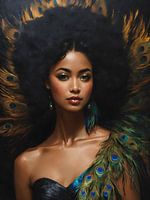 "Verenpracht" is een betoverend collectie dat de fascinerende combinatie van elegantie en natuurlijke schoonheid verkent. Dit visuele kunstwerk neemt de kijker mee op een reis door een wereld waarin een vrouw schittert in een adembenemende jurk gemaakt van pauwenveren. De pauwenveren vormen een weelderige en kleurrijke textuur, die de gracieuze vormen van de jurk benadrukken en een gevoel van beweging en levendigheid creëren.