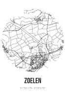 Zwart-witte landkaart, stratenplan of plattegrond van Zoelen. Zoelen is gelegen in de Betuwe, in de gemeente Buren, provincie Gelderland. Op de stadskaart zijn alle openbare wegen in Zoelen opgenomen. Verder is de kaart voorzien van de coördinaten van het centrum van Zoelen.