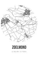 Zwart-witte landkaart, stratenplan of plattegrond van Zoelmond. Zoelmond is gelegen in de Betuwe, in de gemeente Buren, provincie Gelderland. Op de stadskaart zijn alle openbare wegen in Zoelmond opgenomen. Verder is de kaart voorzien van de coördinaten van het centrum van Zoelmond.