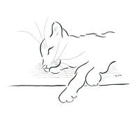 Sweet Dreams is een minimalistische zwart-wit inkttekening van kunstenaar Karen Kaspar. Een schattig katje ligt op de grond te slapen. Het lijkt te glimlachen en zoete dromen te hebben.