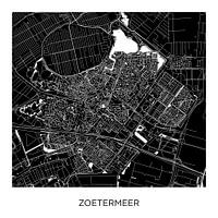 Geïllustreerde stadsplattegrond van Zoetermeer en Benthuizen in een vierkante formaat en met de stadsnaam Zoetermeer.
