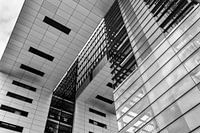 Moderne architectuur van de Zollhafen kantoorgebouwen langs de rivier de Rijn in de Duitse stad Keulen.