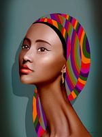De titel van dit werk zegt al voldoende, maar graag benadruk ik dat dit wel een heel mooie weerspiegeling is van een zomer in Afrika. Een mooie vrouw met een mooie hoofdband of haarband. De lange nek geeft een speciaal en mooi effect aan het werk.