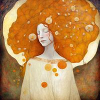 Mixed media illustratie in voornamelijk oranje en beige tinten.