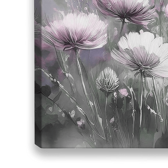 Een bijzonder zomers schilderij met een bloemenzee in monochroom met bloemen in zeer zacht vergrijsd lila.