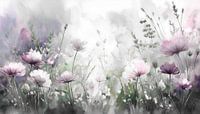 Een bijzonder zomers schilderij met een bloemenzee in monochroom met bloemen in zeer zacht vergrijsd lila.