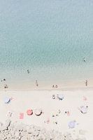 De luchtfoto toont de levendigheid van Tropea, met zijn bruisende stranden en kleurrijke strandgangers die genieten van de zonovergoten dag. Het is een beeld dat de tijdloze schoonheid van deze populaire badplaats vastlegt en de aantrekkingskracht van de Italiaanse kust benadrukt.