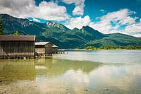 Boothuizen aan de Kochelsee op één dag in de zomer