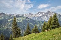 De bergwereld in het Tannheimer Tal. Uitzicht vanaf het bergstation Füssener Jöchle.