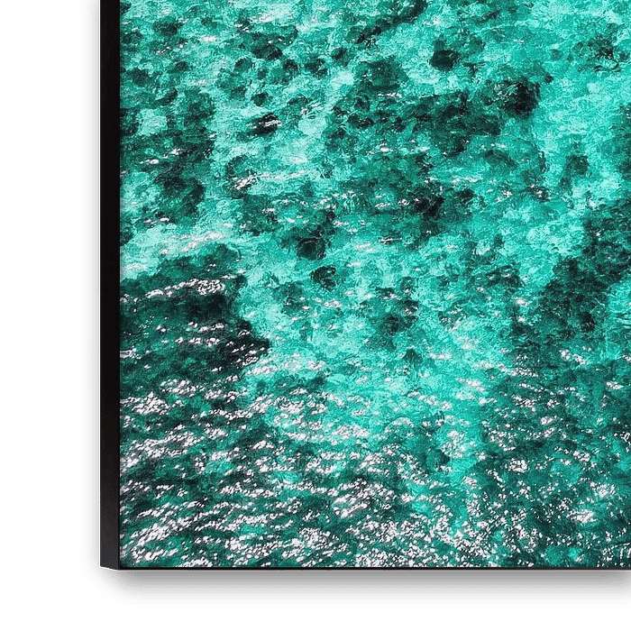 De serie onthult panorama's waar kleuren elkaar ontmoeten en in balans met elkaar versmelten. Het briljante blauw van de oceaan - van doorschijnend turkoois tot diepblauw - interageert met het dichte groen van de weelderige bossen, een symbool van ongerepte natuur. De stranden tekenen lichtgevende witte lijnen die contrasteren met de hypnotiserende bewegingen van de golven. Dit levendige palet roept direct de warmte, zachtheid en zonne-energie van Bali op.