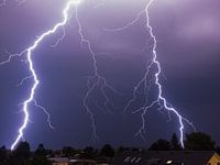 Zomers onweer met blikseminslag in Herrsching, Beieren.