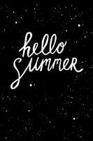 Quote citaat zwart-wit poster Hello Summer. Handgeschreven met een achtergrond met verf-spetters. Zwarte achtergrond,…