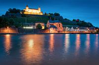 Vesting Marienburg en St. Burkard in Würzburg op een avond in de zomer