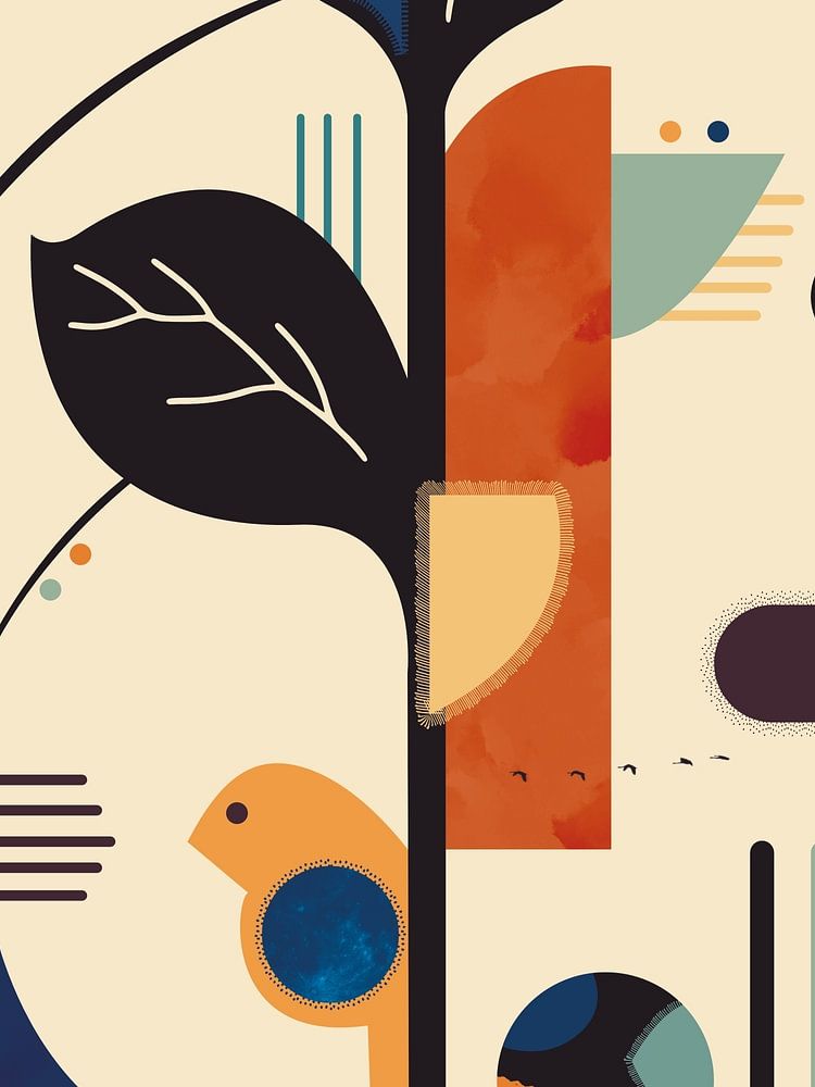 Abstracte weergave van een zomeravond in de stad, waarin ik organische en geometrische elementen heb gecombineerd. Texturen van bladeren en grassen en silhouetten van vogels ontmoeten gestileerde stadsimpressies. De compositie is geïnspireerd op het Zuiderpark in Rotterdam en combineert natuurlijke dynamiek met stedelijke architectuur – gereduceerd tot vormen, lijnen en kleurcontrasten.