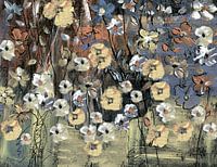 Bloemenschilderij - acrylschilderij met grafische elementen.