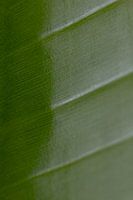 Een macro-foto van een blad van een plant. Ingezoomd op de nerven van het blad. De structuren en texturen van het blad zijn duidelijk zichtbaar. Het blad glanst en het verloop van het licht geeft een fris beeld.